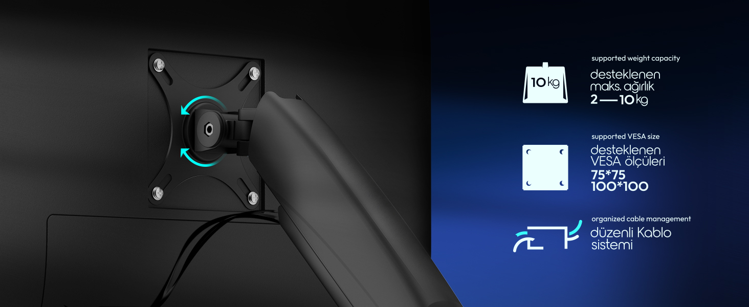 Taşıma Kapasitesi | VESA Uyumlu Monitör Kolu